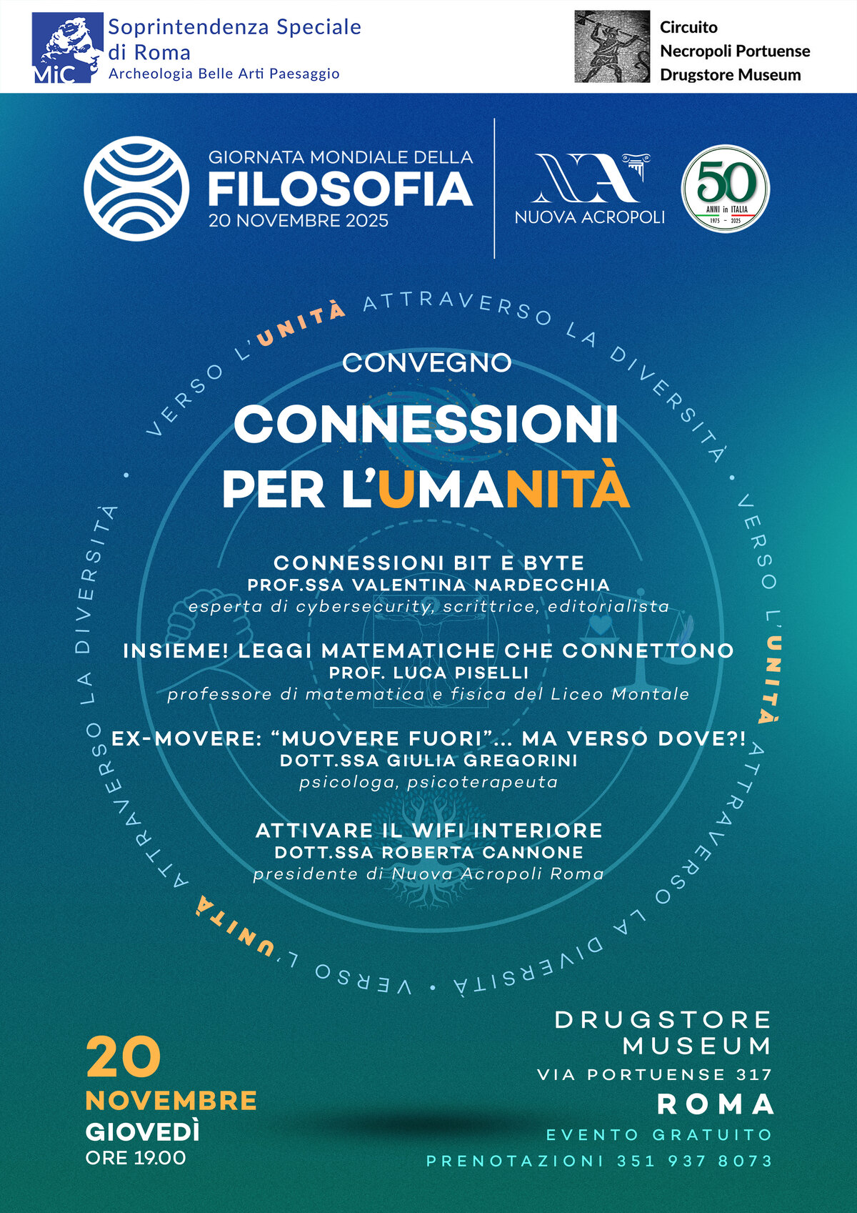 L’incontro è una opportunità per esplorare il tema delle connessioni in diversi ambiti disciplinari, dall’informatica alla matematica, dalla psicologia alla filosofia, indagando come ogni cosa nella natura e nel mondo sia all’interno di una rete di legami e di relazioni, creando così una unità che trascende le diversità. L’evento è gratuito.