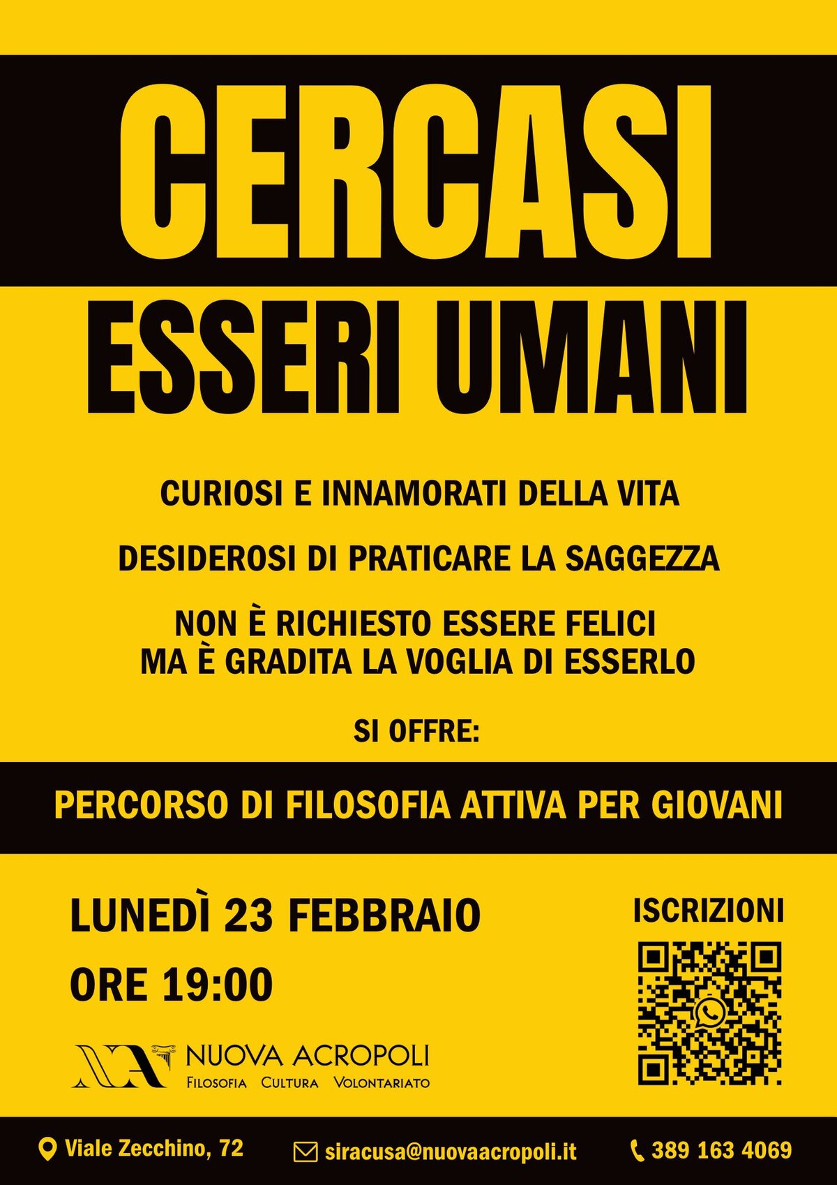 Partecipa all'incontro di presentazione del percorso di Filosofia Attiva Lunedì 23 Febbraio alle ore 19 nella sede di Viale Zecchino 72.